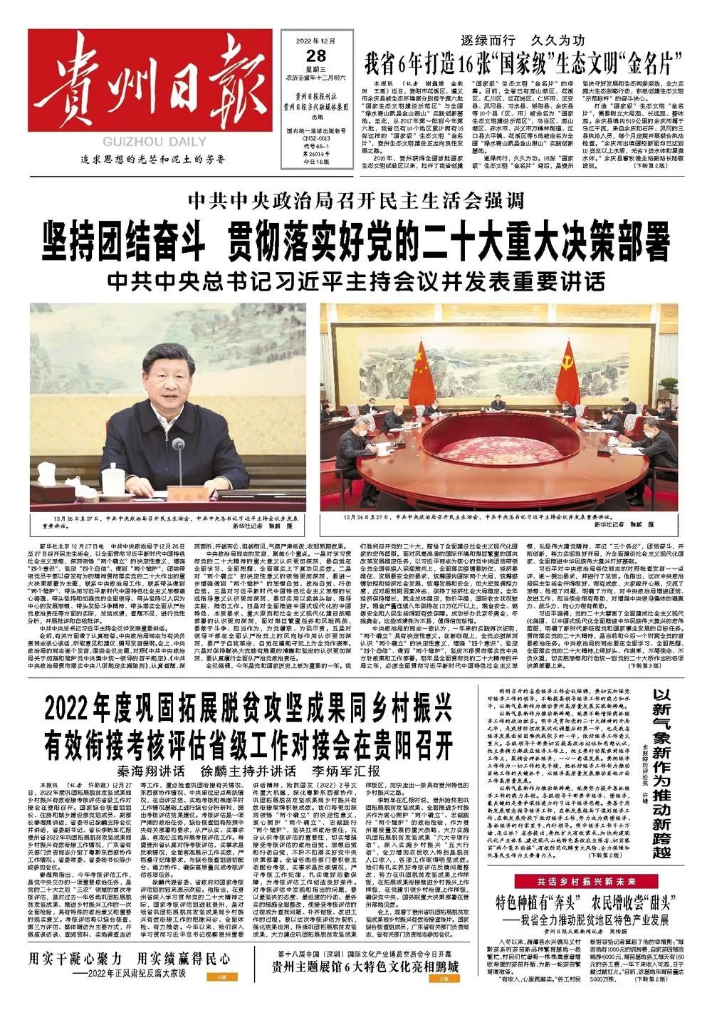 《贵州日报》12月28日版面速览