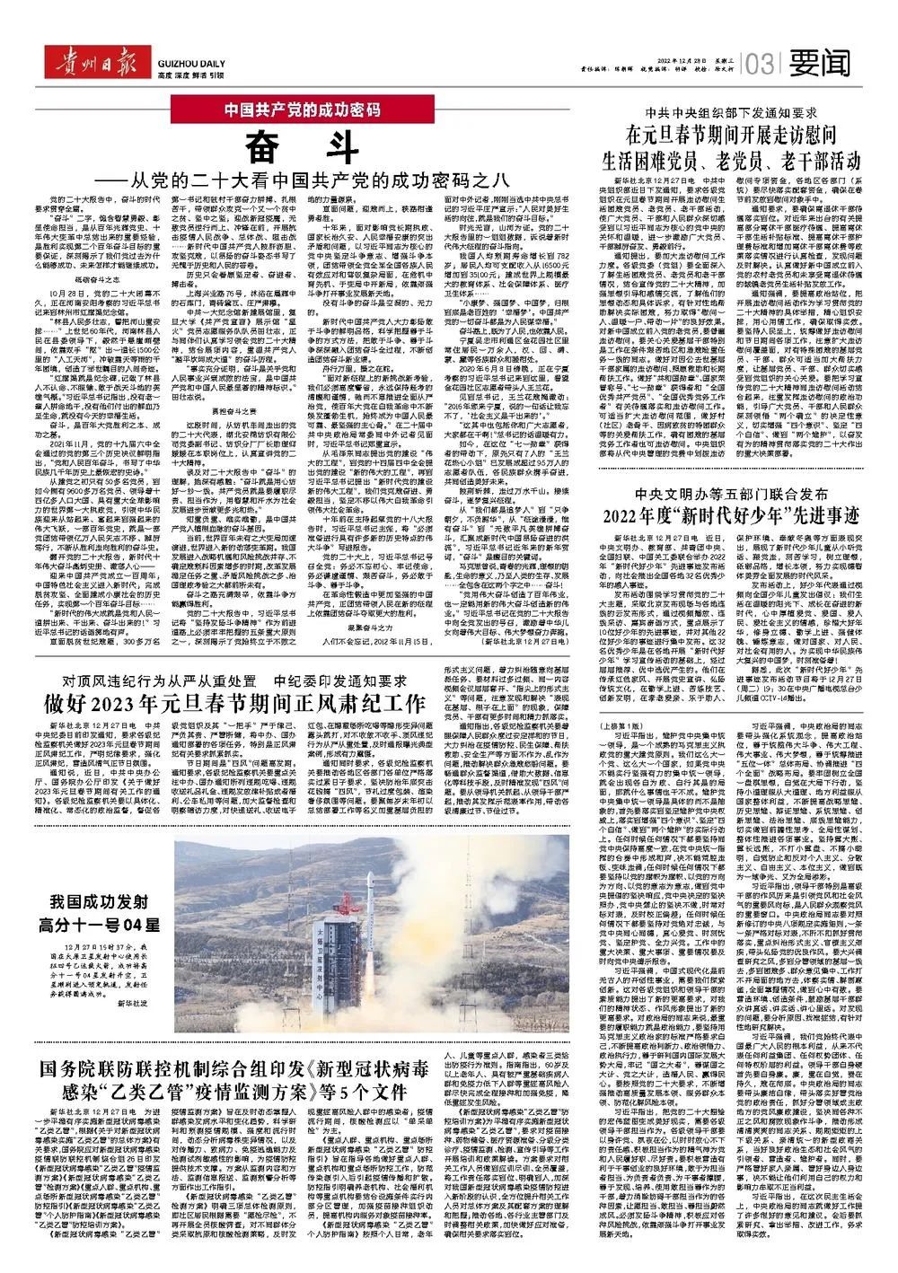 《贵州日报》12月27日版面速览
