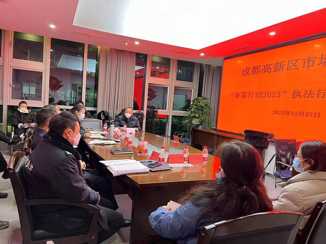 12月27日,在省、市市场监管局“春雷行动2023”部署视频会议结束后,成都高新区市场监管局赓即组织召开“春雷行动2023”动员部署会,对成都高新区 “春雷行动2023”执法行动进行了具体安排部署,对行动目标、主要任务、责任分工等进行了深入解读。高新区市场监管局全体局领导,各业务处队负责人,各街道市场监管所所长参加会议。