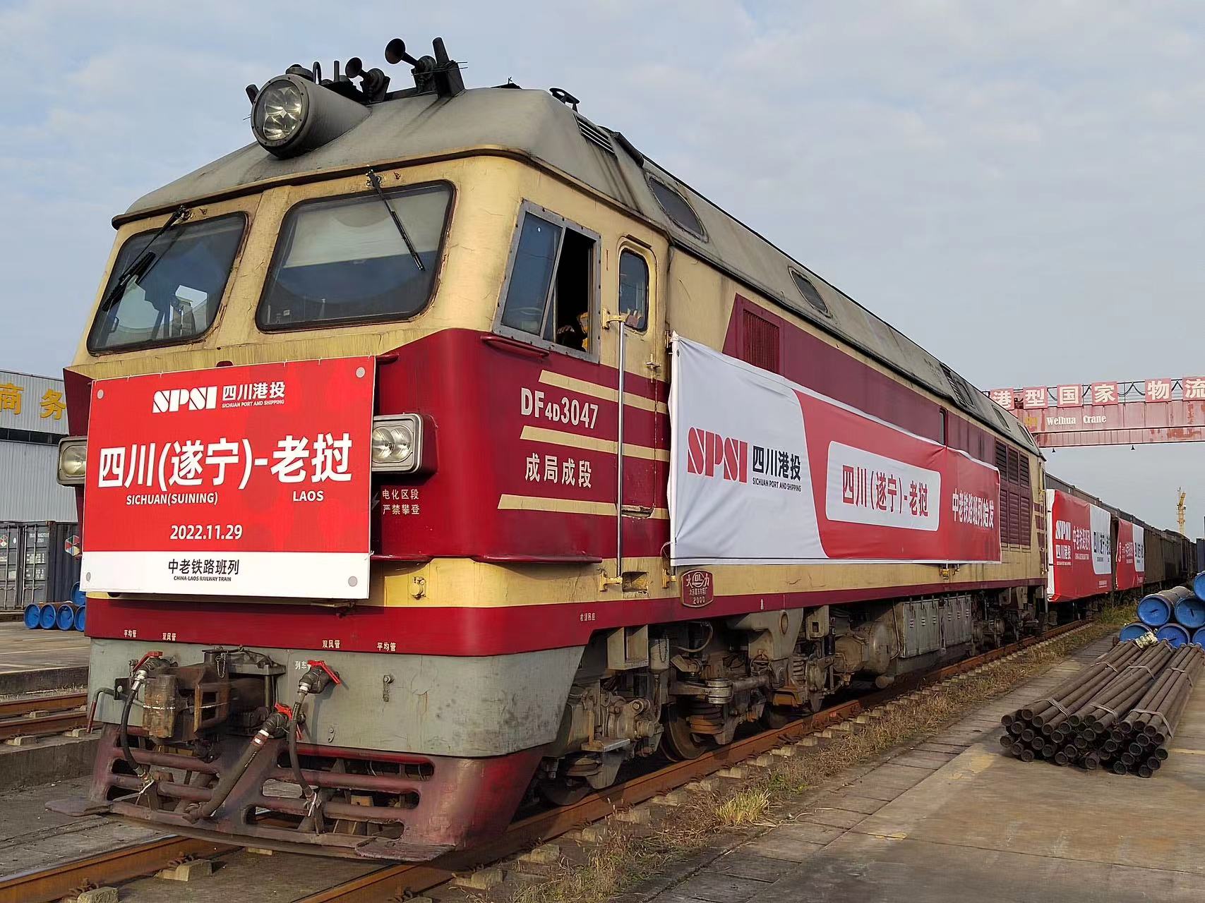 临近年底,全省多地传来中老铁路国际货运班列首发的捷报。搭载着新材料、电子产品及农用化肥的中老铁路(达州—万象)国际货运班列从达州瓮福国际班列货场启程,中老班列(遂宁—老挝)运载着化工和工业原材料产品从遂宁始发,满载25个标箱家电产品的中老国际货运列车,从西南(自贡)国际陆港自贡南站一路向南,开往老挝万象。