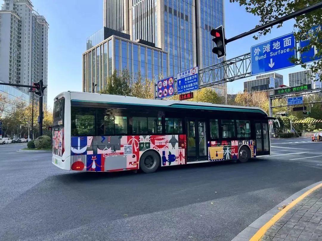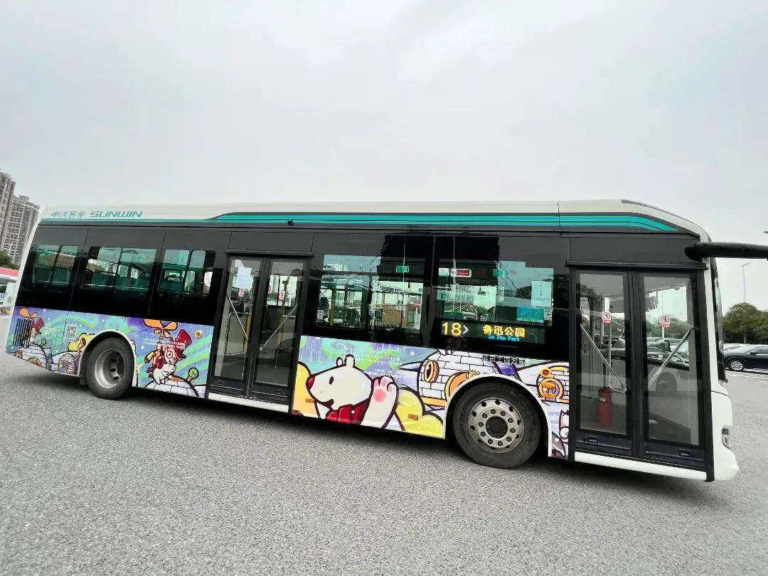 看到车身印满插画公交驶来