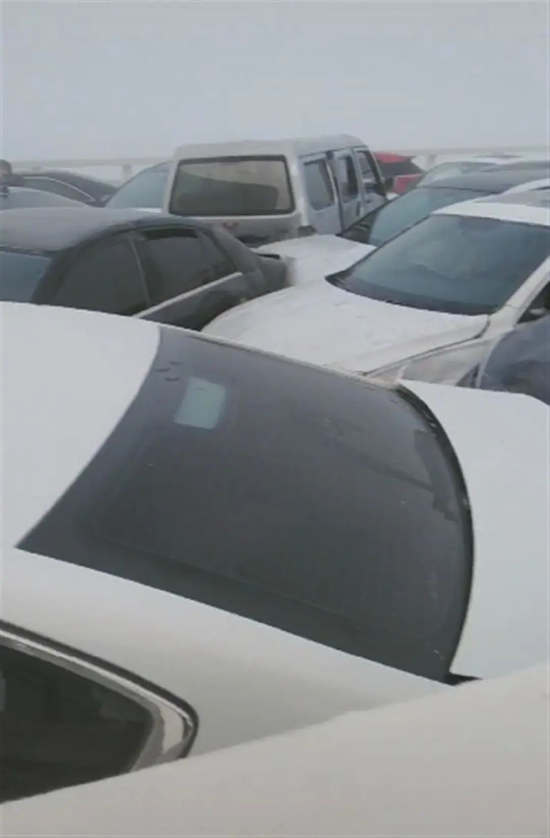 网友拍摄的视频中,满屏幕的车辆都“挤”在一起,不少车辆都已经被撞得面目全非。现场视频内明显可见有大雾,能见度有限。