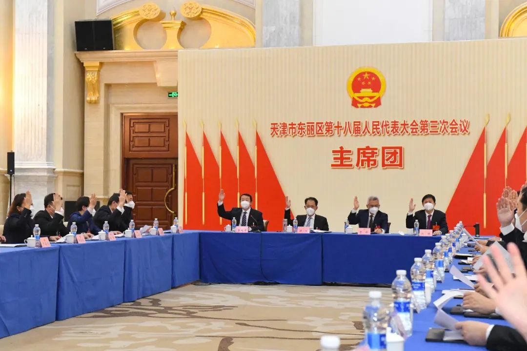 今天下午,东丽区第十八届人民代表大会第三次会议主席团召开第三次会议。谢元、贾堤、刘伟出席,李大勇主持。