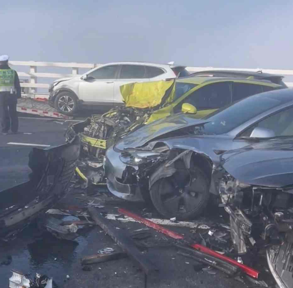 据目击者张先生介绍,今天早上出门时雾非常大,可见度低,黄河大桥附近尤为严重,仅能看见十几米范围。加上天气凉,桥上结冰,刹不住车。