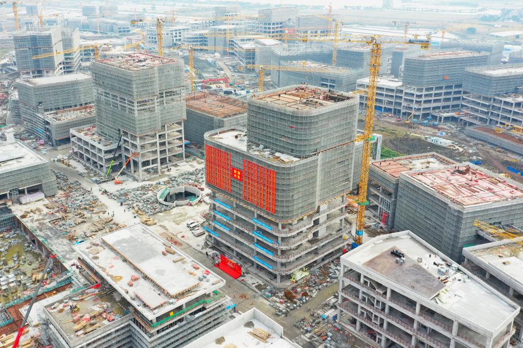 华为上海青浦研发中心项目(G组团)主体结构封顶。(受访者供图)