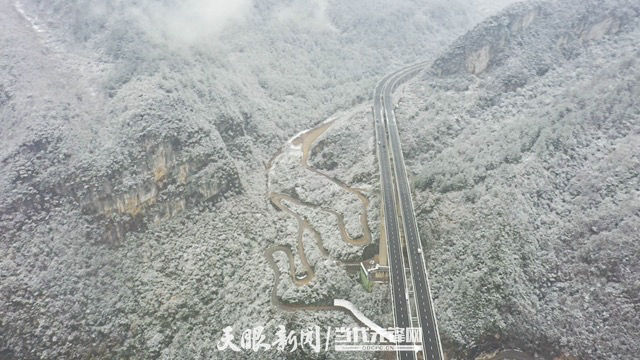 受强冷空气影响,12月27日08时至28日08时,贵州75县域内出现降雪或雨夹雪。随着大雪的落下,28日上午,贵黄高速公路贵定互通连接线也实现全线贯通,在大雪的装点下,美不胜收。