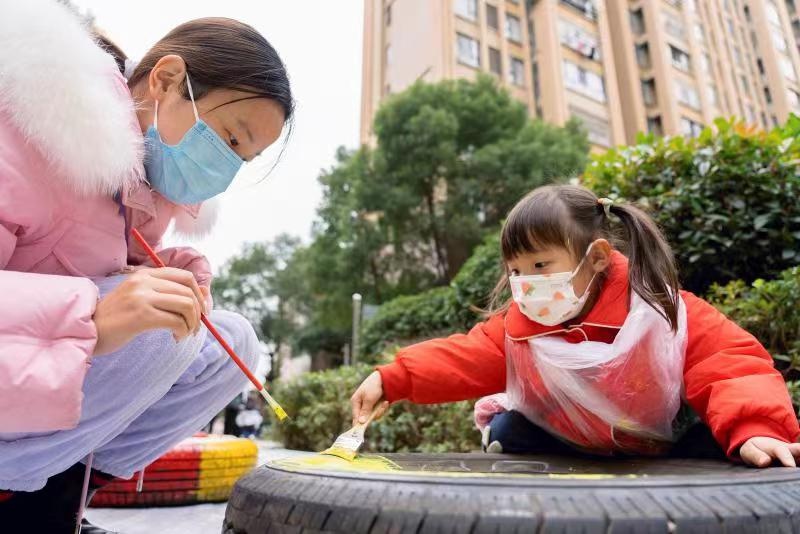 “我们小区的环境本来就很好,这次社区搞活动,我们带着孩子就来画上几个。”小区居民王齐和5岁的女儿在画“星空”,2个人正为了轮胎上的星星是什么颜色打闹。王齐说,这次活动非常有意义,享受亲子欢乐时光的同时,还共同装点提升了小区环境。
