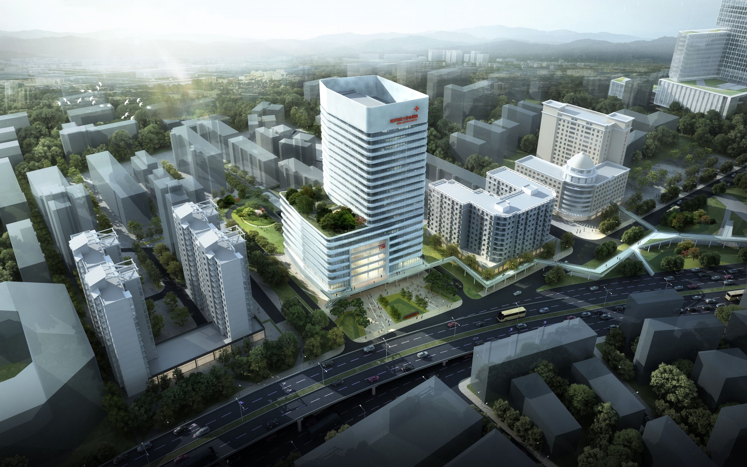 协和武汉红十字会医院(武汉市红十字会医院)在建的北区模拟效果图。