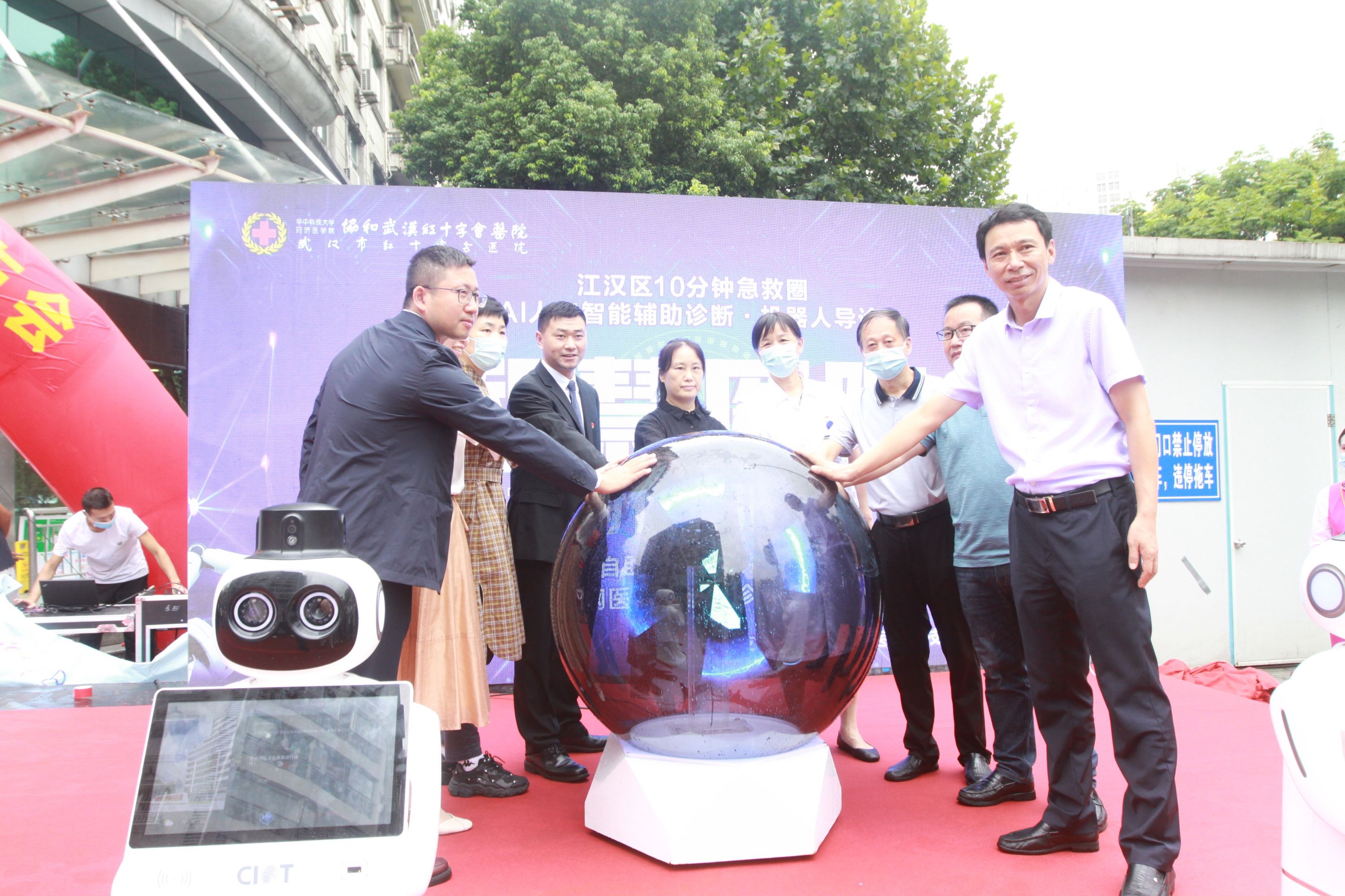医院引进智能闸机系统,快速识别患者体温;引进2台AI导诊机器人,通过人机对话形式为患者进行智能领路;引进肺结节AI辅助诊断系统,秒级完成肺结节筛查的10多项工作;借助影像“云胶片”,患者做完X光、CT、磁共振后扫描二维码,便能随时调阅检查记录;引入国内领先的智慧救援云平台,江汉区市民登录“红会医疗救援”微信小程序能一键报警,实现远程视频急救并自动定位,初步建立江汉区十分钟医疗急救圈。