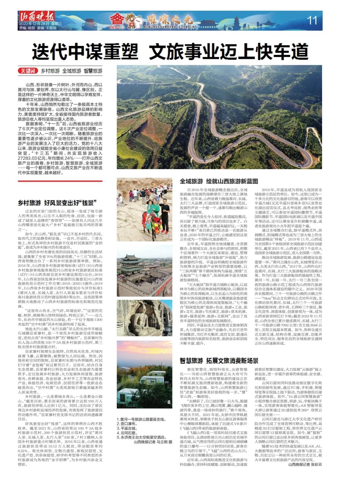 数据表明,“十一五”后,山西省旅游业经历了6次产业定位调整。这6次产业定位调整,一次比一次深入,一次比一次明晰。随着旅游业的重要性逐步被认识,产业地位的不断提升,给旅游产业的发展注入了巨大的活力。党的十八大以来,旅游业赋能全省小康社会建设的效用日益突显。“十三五”期间,共实现旅游收入27283.03亿元,年均增长24%……打开山西文旅产业的画卷,乡村旅游、智慧旅游、全域旅游……每一个都可圈可点,山西文旅产业在不断迭代中实现重塑,越来越好。