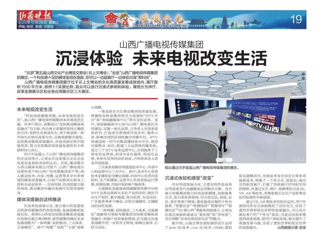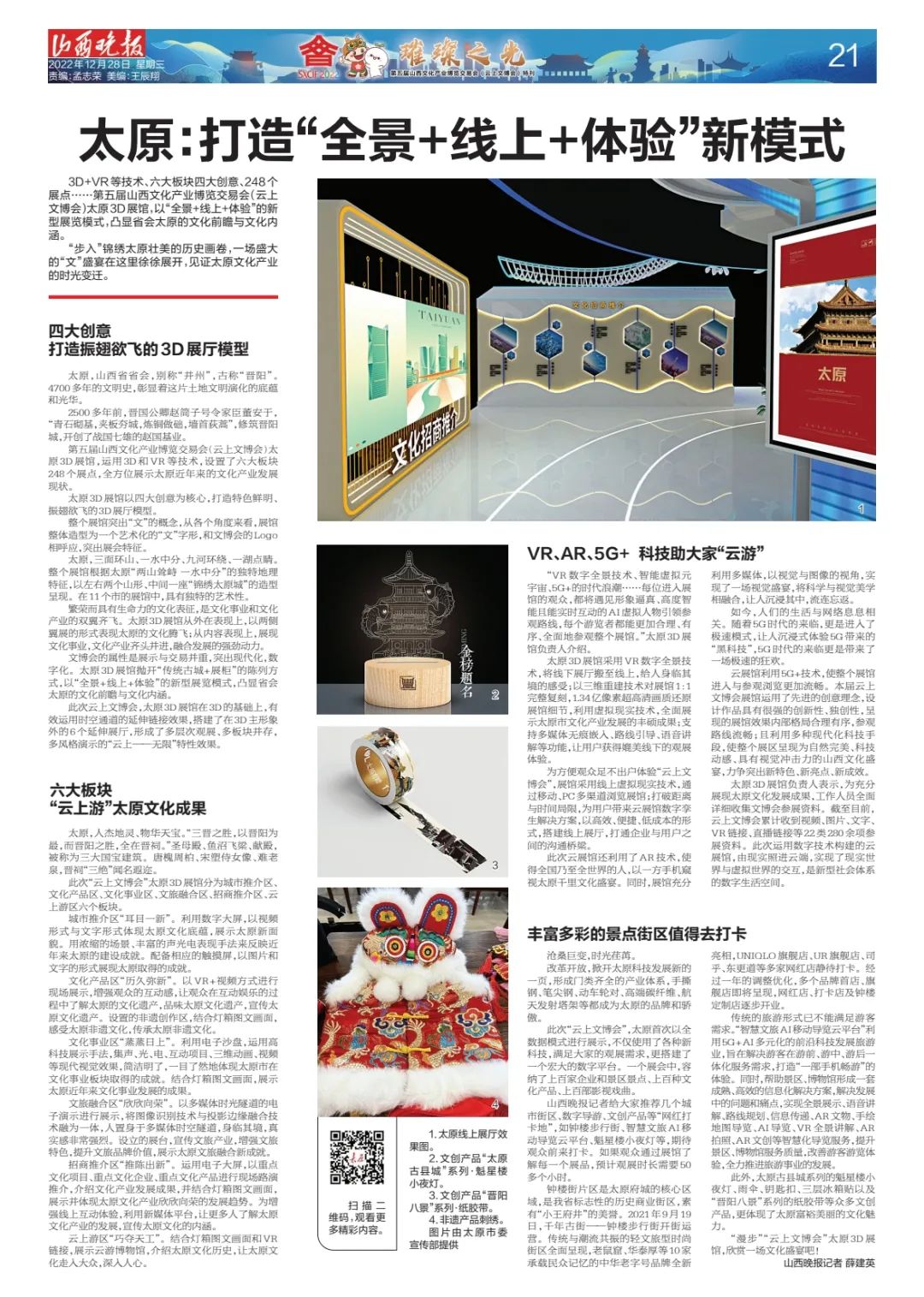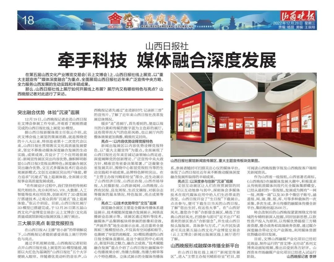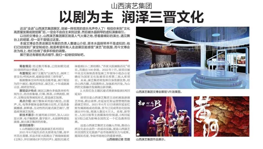在第五届山西文化产业博览交易会(云上文博会)上,山西日报社线上展览,以“重大主题宣传”“媒体深度融合”为重点,全面展现山西日报社近年来广泛宣传中央方略、全力服务山西发展的生动实践和丰硕成果。