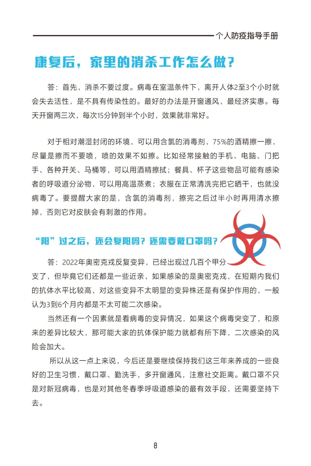 当前,疫情流行加速,面对严峻复杂的形势,第71集团军医院整理了一份《个人防疫指导手册》,帮助官兵们科学认知疫情,积极有效的进行防控。接下来,我们一起去看看吧!