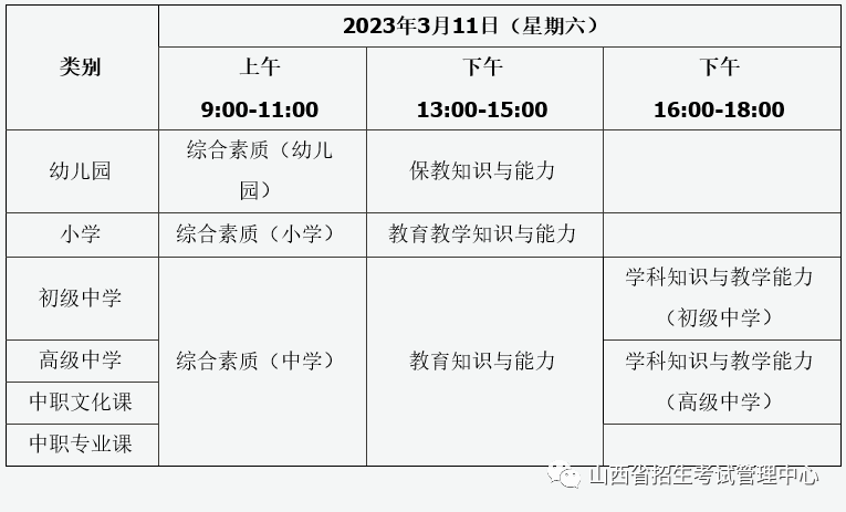 根据教育部和省教育厅有关规定,现将山西省2023年上半年中小学教师资格考试笔试有关事项公告如下: