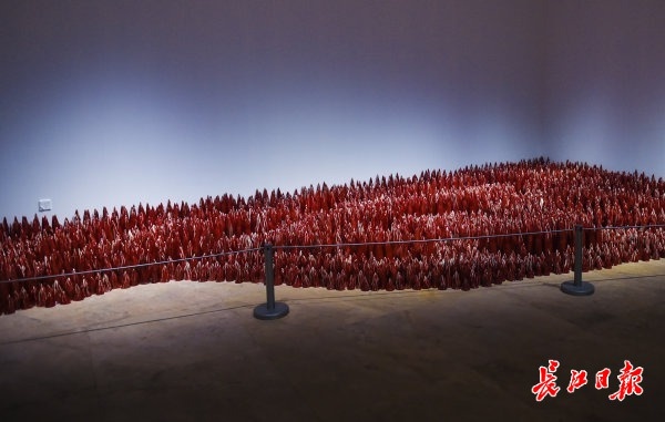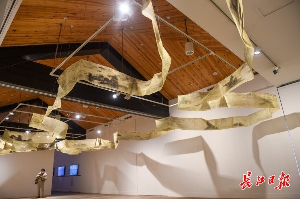 悬挂的20余米长卷《炁》、用7000棵模型树搭建的“绿色小径”、在稻谷上林立的人物石膏、对羊蹬艺术合作社的现场呈现……这些有趣又富有内涵的作品,让从外地来汉的游客赞不绝口。从成都和朋友结伴来汉的李同学提前做好攻略,他说:“昨天去了千年名楼黄鹤楼,今天逛江汉路步行街,打卡武汉美术馆(汉口馆),能一下看到这么多国内外优秀艺术家的作品,很值。”