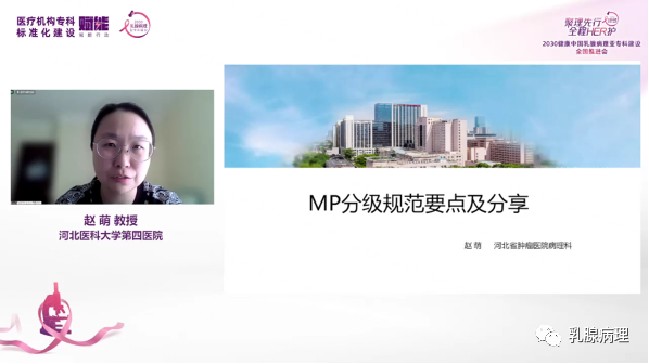 河北医科大学第四医院赵萌教授带来主题为“MP分级规范要点及分享”的精彩报告,赵萌教授表示,MP分级系统对治疗前穿刺标本具有更强的依赖性,因此临床与病理交流合作至关重要。另外,MP分级强调瘤床肿瘤细胞减少的程度,能较直观地体现出治疗效应,但MP分级未结合治疗后淋巴结情况,因此在精准治疗时代需要更完善信息来体现患者个体化情况。