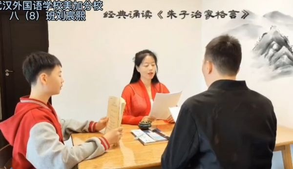 据介绍,在美加外校初中部,学生每日诵读经典,每月国学PK。同时,学校多年坚持“亲子诵读”。十五年来,学校被中央文明办评为“全国未成年人思想道德建设先进单位”,被全国妇联和教育部命名为“全国家庭教育创新实践基地”,还被评为“湖北省文明单位(校园)”“武汉市文明单位”“武汉市群众满意中小学校”等。