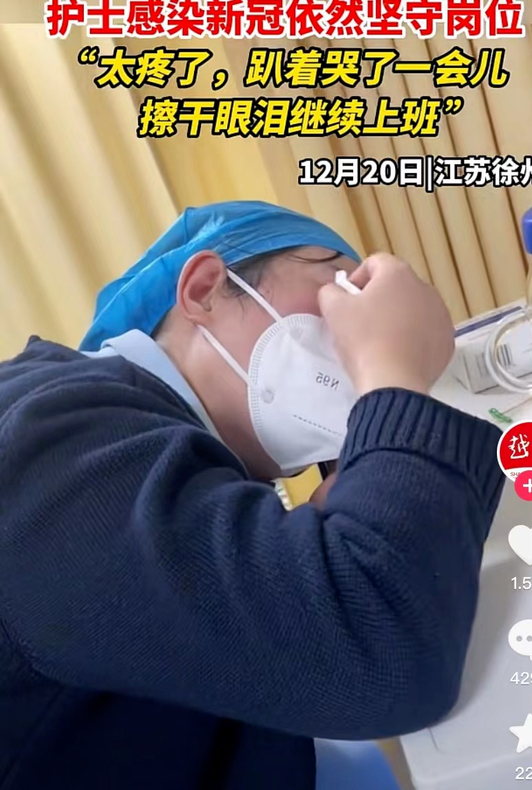 一位护士感染新冠后,依旧在上班,疼得实在受不了了,就趴在桌子上哭,哭完了擦干眼泪继续上班。