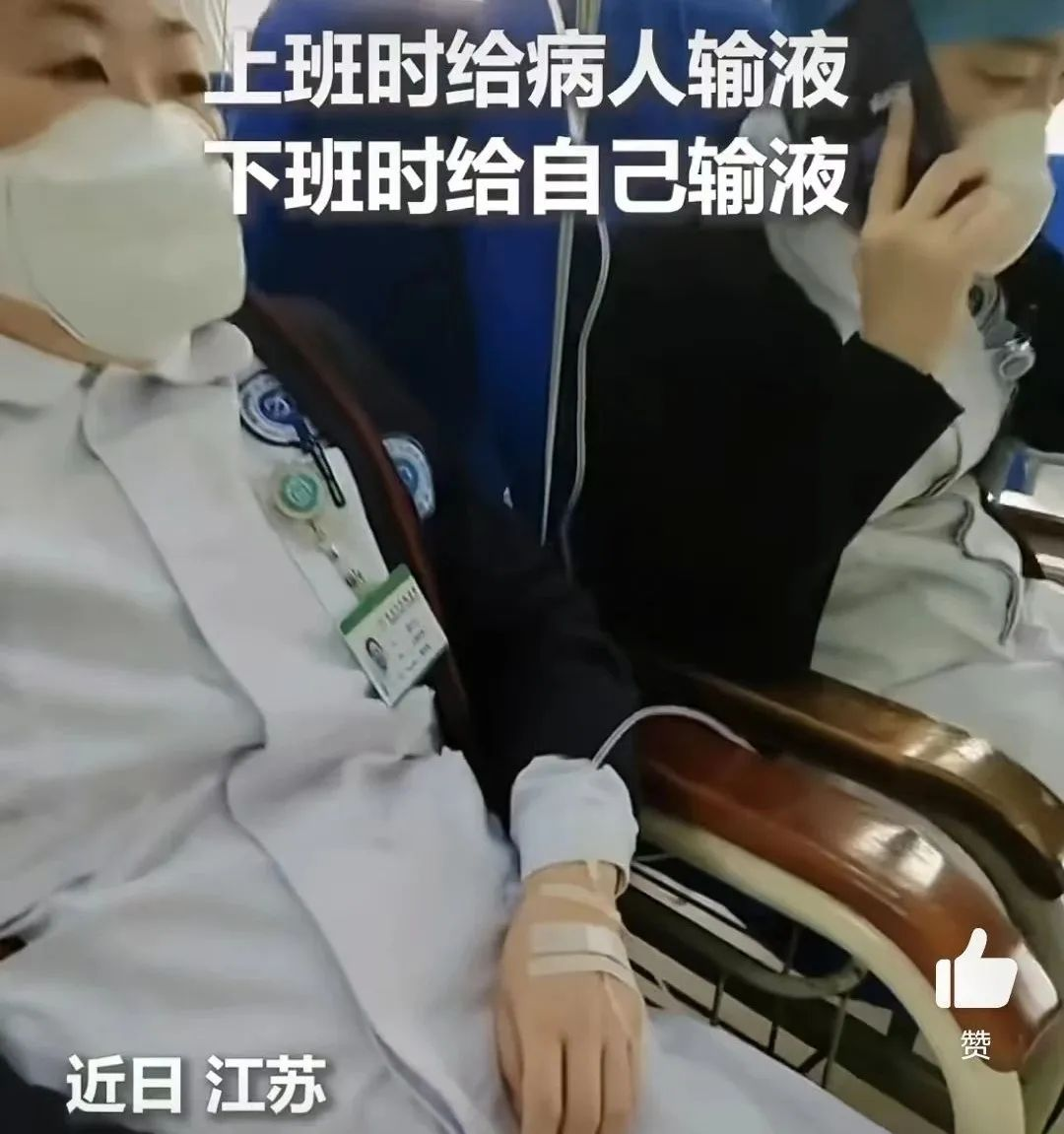 可就这么点时间,还得让同事给自己输液。