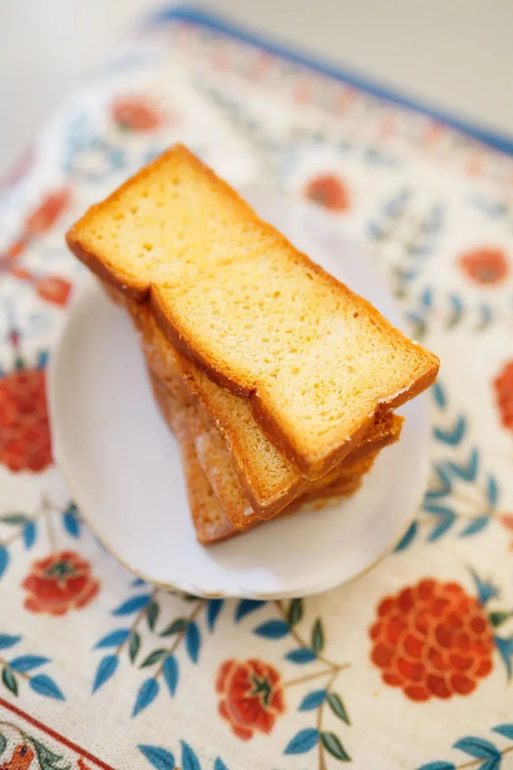 还有“别司忌”,一看就知道,这名字是英语biscuit(饼干)的谐音。可别司忌分明是刷了黄油烤到焦脆的面包条,表面铺着甜蜜蜜的糖霜,一口咬下去硬梆梆的,随即又有黄油在舌尖融化的美妙滋味,配上咖啡或者浓茶,一下午就能干掉一整袋。