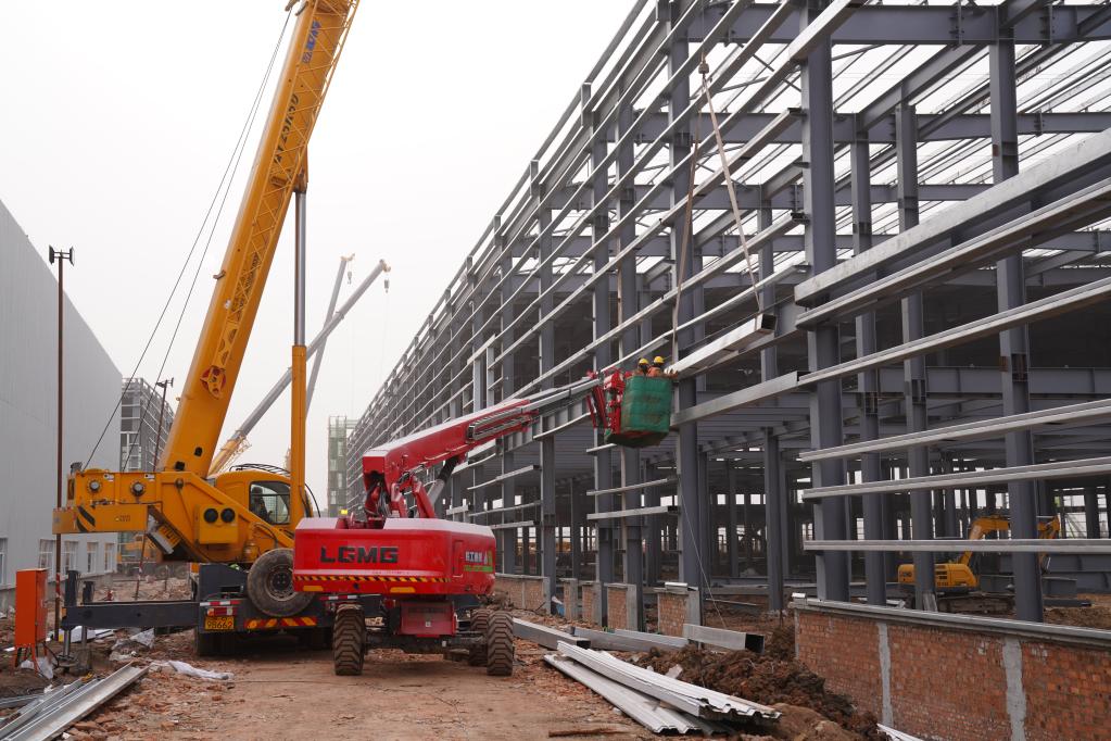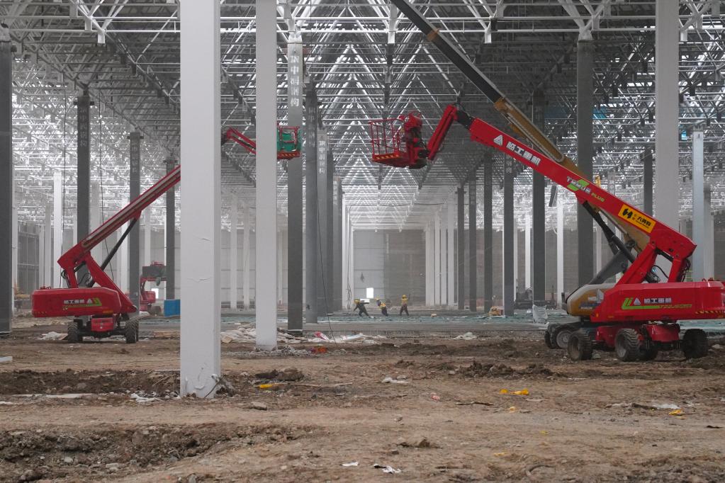 距一汽弗迪项目不远,今年正式开工的奥迪一汽新能源项目于近日在极寒中迎来暖封闭,目前正在紧张进行厂内地面混凝土和机电系统施工。该项目用5个半月实现暖封闭,比原计划工期提前一个月。