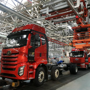 一汽解放卡车厂总装车间(新华社记者张建 摄)