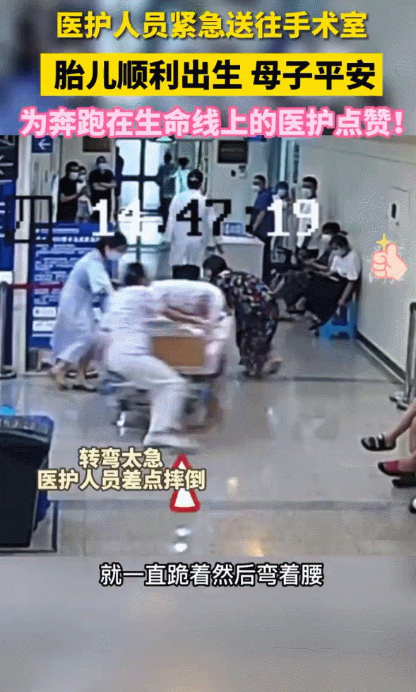 浙大四院人文产房内,一名产妇突发脐带垂落,情况危急。浙大四院人文产房助产士丁莉坚持9分钟跪在床上,弯着腰托举起胎儿的头部,减轻对脐带的压力。在这个过程中,因为转弯太急,推着病床的医护人员差点摔倒,甚至被甩到撞墙,但她们依然以最快的速度将产妇送至产房。