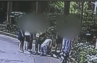 甘肃兰州,马路防护栏被撞散落一地,路过的学生纷纷飞奔帮忙清理道路。