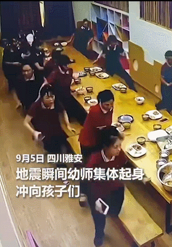为责任奔跑不求回报9月5日,四川省甘孜州泸定县发生6.8级地震,地震发生时,雅安荥经县一家幼儿园老师们正在吃饭,随即丢掉碗筷冲到孩子们所在房间,老师们用时约1分钟,将270名幼儿转移到安全地带。