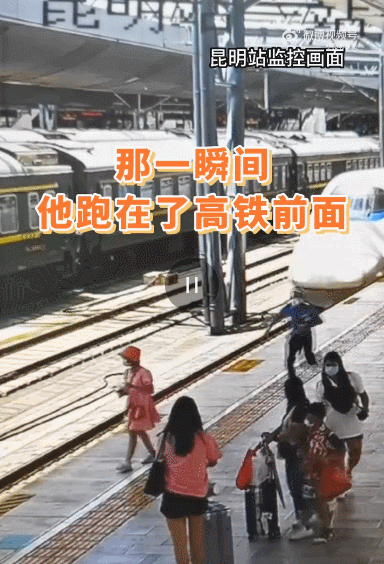 从大理开往广州南的D3844次列车驶入昆明站,即将到站停靠时,一名小女孩突然冲入站台边缘。危急时刻!昆明客运段支援昆明站暑运的工作人员张建斌高速冲刺,一把拉回了小女孩。