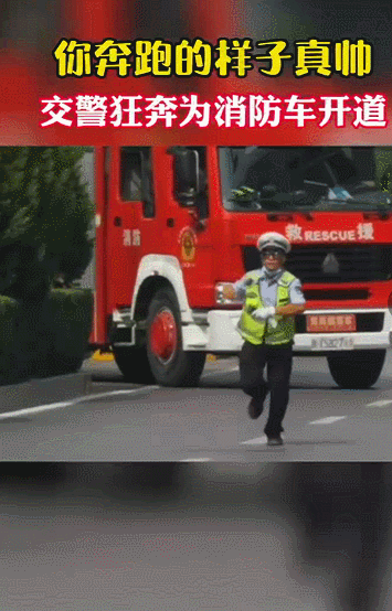 陕西榆林,消防员出警遇道路堵车,为尽快赶往事发现场,执勤交警逆行狂奔,为消防车引导开道。