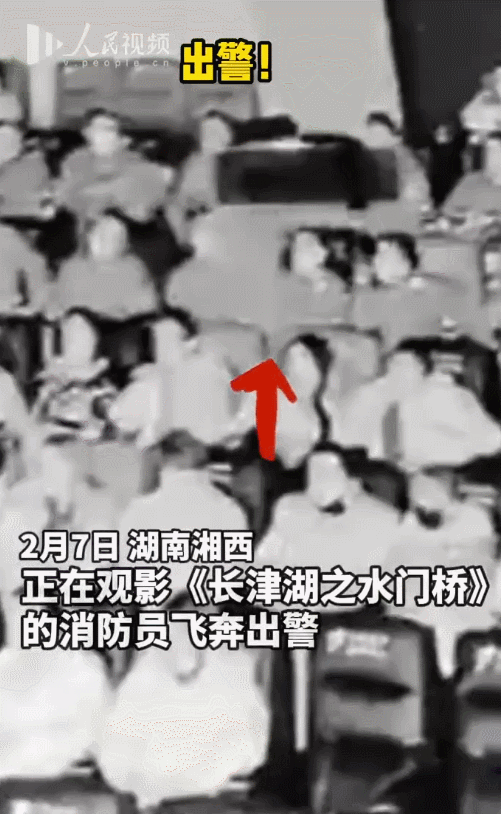 湖南湘西,消防员正在电影院观看《长津湖之水门桥》,突然收到出警任务,队员们迅速反应飞奔出影院,他们奔跑的身影让人感动。