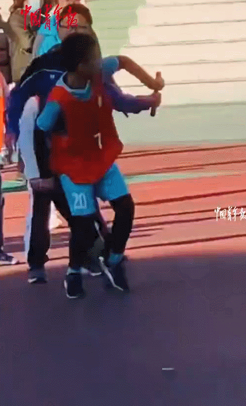 辽宁大连,一名五年级的男生在接力跑比赛中,鞋子不小心被同学踩掉,但他没有丝毫犹豫继续向前奔跑。