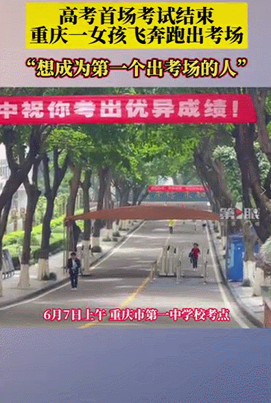 重庆市第一中学考点,高考首场考试结束,一女孩飞奔出考场。她激动地说:“想成为第一个出考场的人,让青春不留遗憾!”