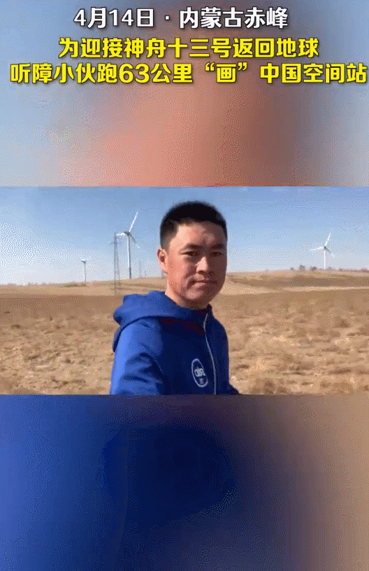 内蒙古赤峰,为迎接神舟十三号返回地球,热爱跑步的听障人士吴广波花7天时间跑出63.61公里,以跑图的方式在草原上“画出”三名航天员肖像和中国空间站。他说想借此迎接英雄回家,祝愿航天员平安抵达地球。