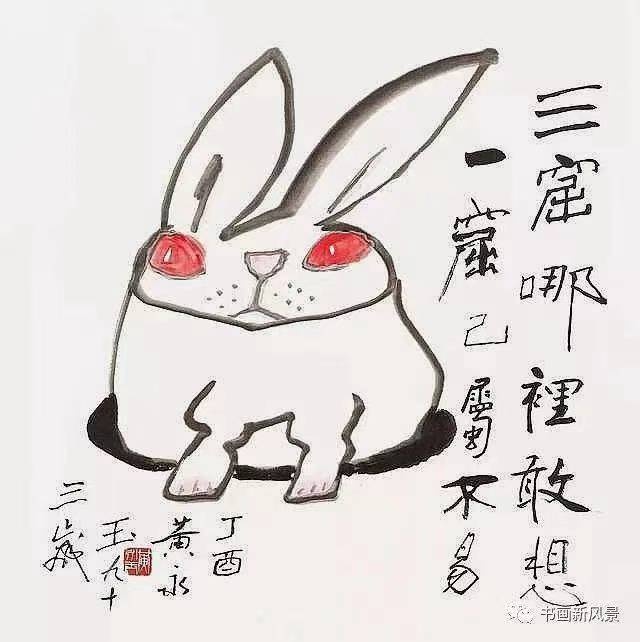 其实仅就个人画风而言,黄永玉的画风向来是比较落拓不羁的,从他过往所绘制过的其他与兔子有关的插画来看,这个蓝色兔子的画风倒是与此前他绘制的一些兔子画风一致,形态上颇为夸张。