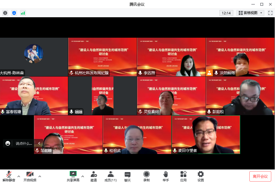 昨天上午,由杭州市社科联(院)主办的2022“我们的价值观”主题活动词研讨会迎来最后一期“和谐”,面对新冠感染高峰,杭州的社科专家、学者代表们转战线上继往开来,围绕“建设人与自然和谐共生的城市范例”主题,探讨“和谐”对杭州全面推进社会主义现代化建设的意义、作用以及路径。