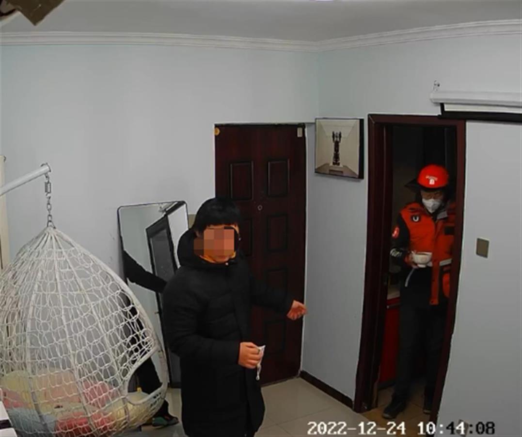 刘女士家的监控视频正好记录下了这一幕,视频显示,刘女士的丈夫推门进屋,随后询问刘女士身体情况,此时跑腿小哥从厨房端着碗出来。刘女士的丈夫诧异地指着跑腿小哥问道:“这是谁?”跑腿小哥此时也愣在了原地。刘女士答道:“找来照顾我的。”随后,跑腿小哥把粥端给了刘女士。