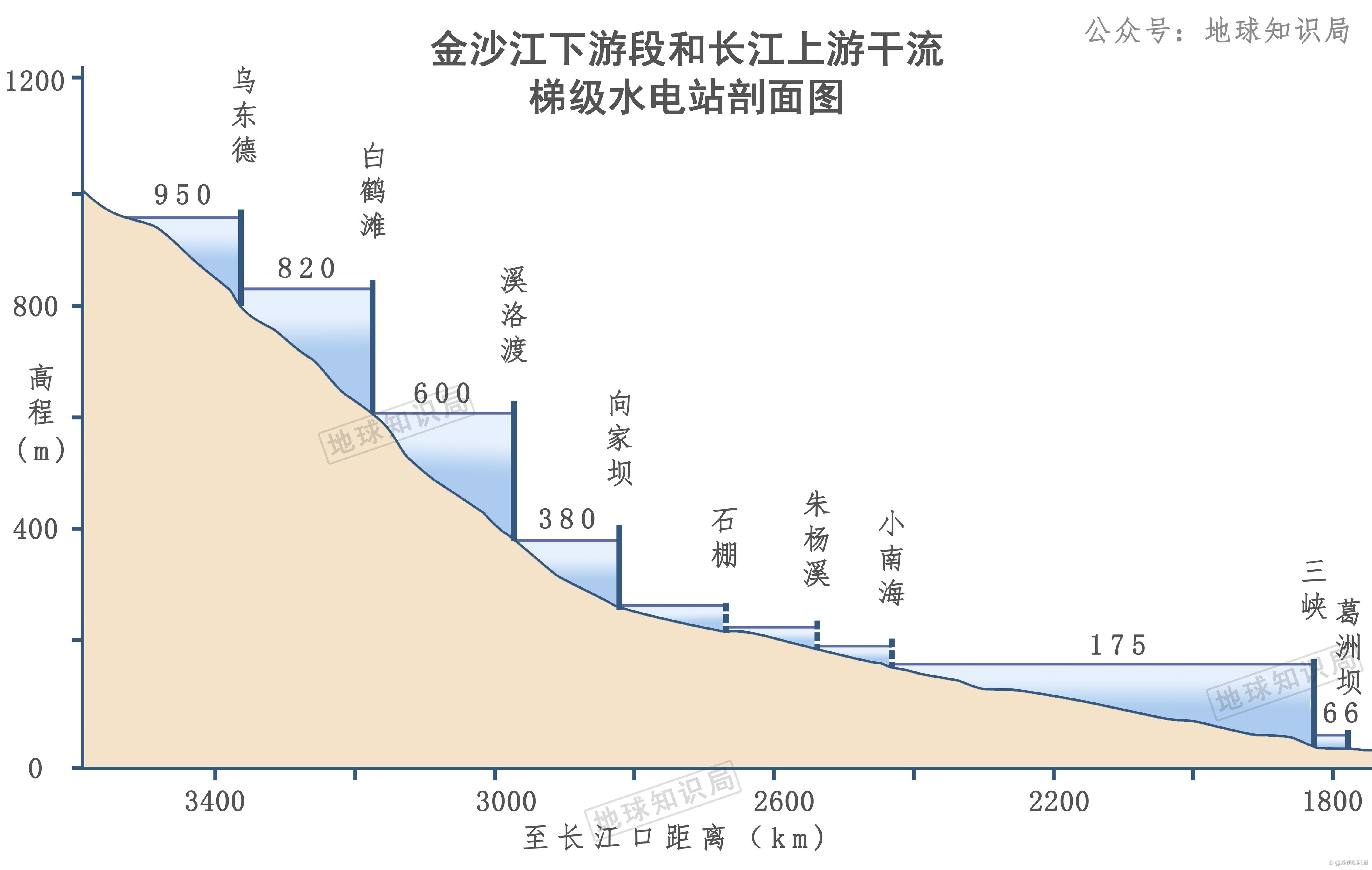 光是金沙江下游从攀枝花到宜宾的河段,全长782公里,就有着729米的落差。相比之下,三峡这一段的落差其实只有109米,从宜宾再往上游走才是真正的水能富矿。
