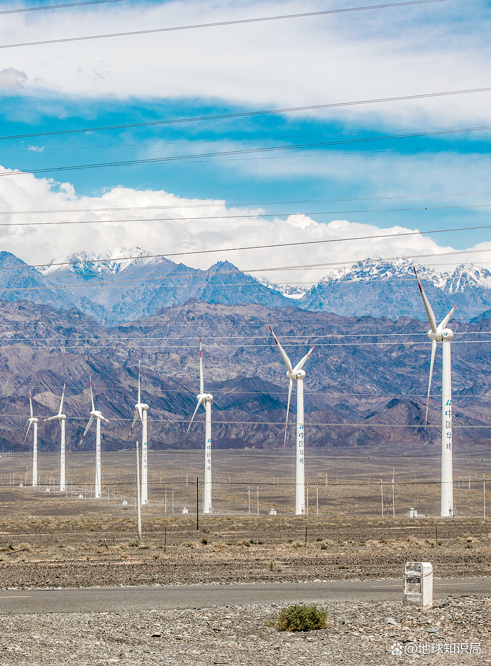 在新疆时常能见到伫立在戈壁上的大风车