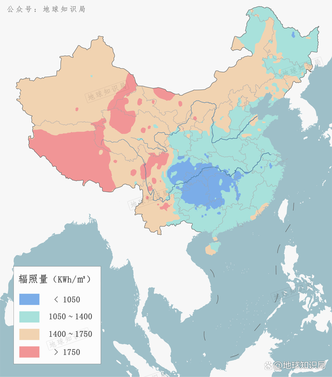 西部地区由于高原多、干燥少雨,太阳能资源也极其丰富,比较全国各地的总辐射照量,西北尤其是高原地带是辐射照量最大的。相比之下,自宜宾以下的长江流域,太阳能资源就少很多。