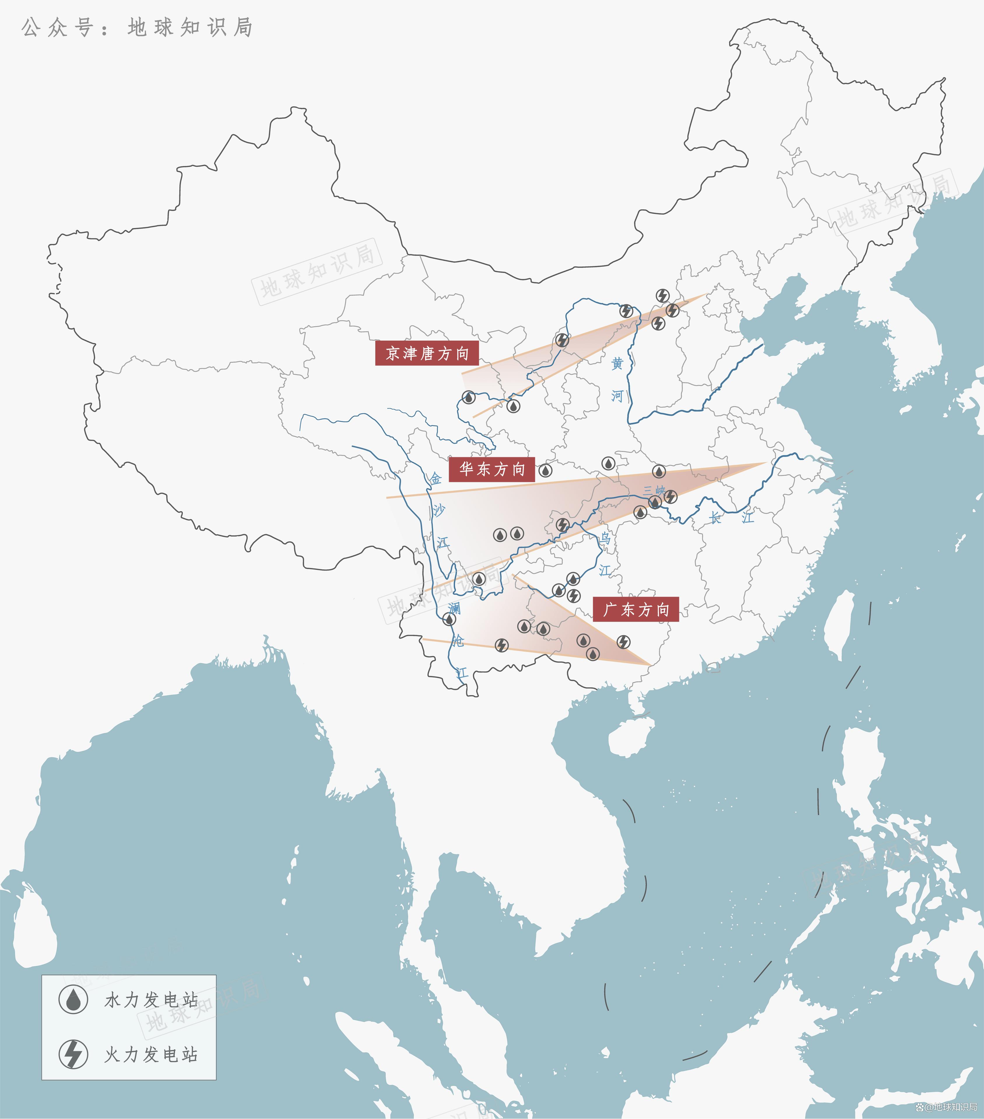 为此,自上世纪90年代开始,"西电东送"工程开始建设,主要分为三个通道。北部通道将黄河上中游水电和山西、内蒙古的火电送往京津冀地区。中部通道将三峡和金沙江干支流水电送往华东地区。南部通道将云贵高原上乌江、澜沧江、南盘江、北盘江、红水河的水电以及当地的火电输送到广东。