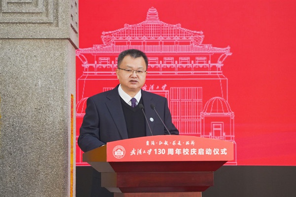 武汉大学新任校长、中科院院士张平文发表题为“承传珞珈薪火,共赴百卅之约”的讲话。他表示,130周年校庆是武汉大学发展史上的一个重要里程碑。学校要以举办百卅校庆为契机,继续坚持学术至上、学者为大、学生为本的办学理念,将学校发展与国家战略、时代需求紧密结合,传承并大力弘扬武大精神,进一步加强情感连接、凝聚发展共识、汇聚各方力量,在实现国家富强、民族复兴的伟大事业中实现自身发展,开启“双一流”建设的新篇章。