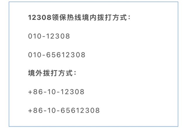 2014年9月,外交部建立全球领事保护与服务应急热线(12308领保热线)。在“12308”短号码正式投入使用的同时,如中国公民在境外因通信网络问题无法正常拨打12308短号码,可通过拨打热线备用号码(010)59913991获得及时、有效的领事保护与服务。