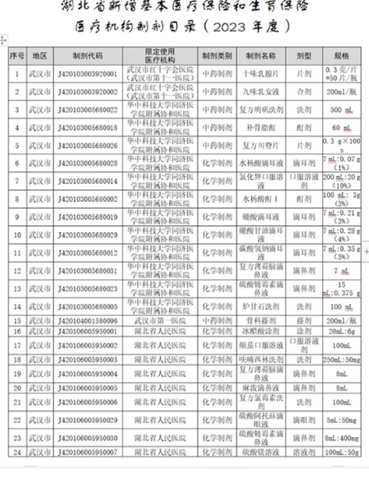 12月28日,极目新闻记者从湖北省医疗保障局获悉,该局发布《湖北省新增基本医疗保险和生育保险医疗机构制剂目录(2023年度)》,将部分制剂纳入医保支付范围,通知全文和目录如下: