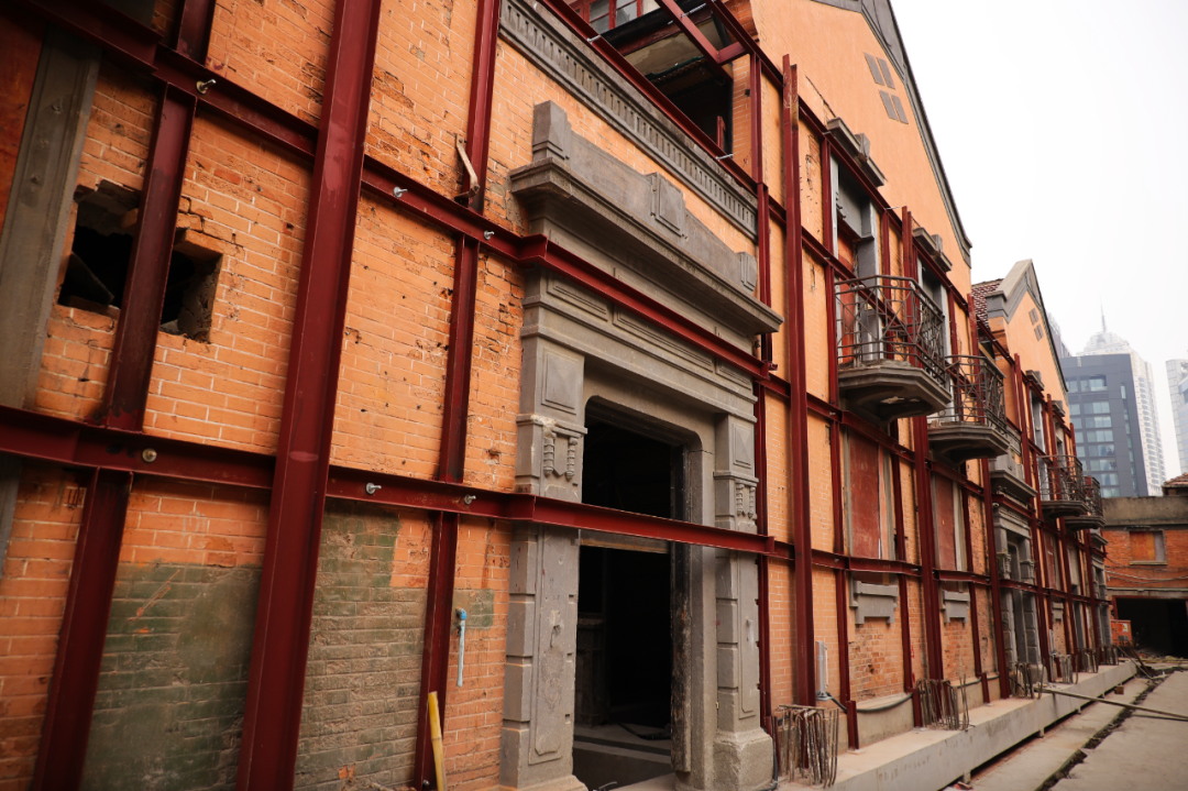 为了避免历史建筑在整体平移过程中受损,东区(18#-20#)3幢历史建筑已经自2022年10月起,进行了加固和上下托梁等前期准备工作。