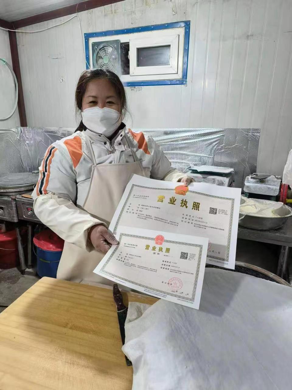 近日,锦绣社区工作人员在走访门脸时,发现辖区内个别商铺还未办理营业执照,工作人员现场指导商户申请个体营业执照。审核通过后,社区工作人员将营业执照送到商户手中,并提示其在开展经营活动中,要自觉接受监管部门监督管理。