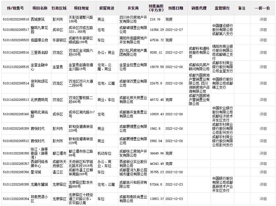 本周大成都范围内,共有57个包含住宅的项目取得预售证,另有29个车位、商业、办公项目预售。