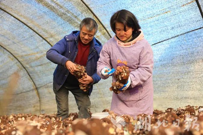 12月26日,湖北省恩施州咸丰县高乐山镇杉树园村的菌菇种植大户邓兴顺、刘荣夫妻俩正在大棚里忙着采收香菇。两人虽身有残缺,但夫妻俩相濡以沫,凭借着顽强的意志和乐观的精神,建立了自己的菌菇生产基地,相互扶持走上了致富路。