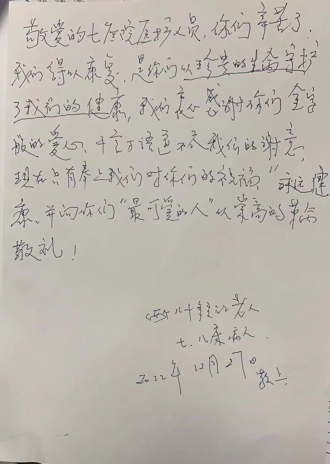 八旬夫妇手书感谢信,称赞医护有金子般的爱心。