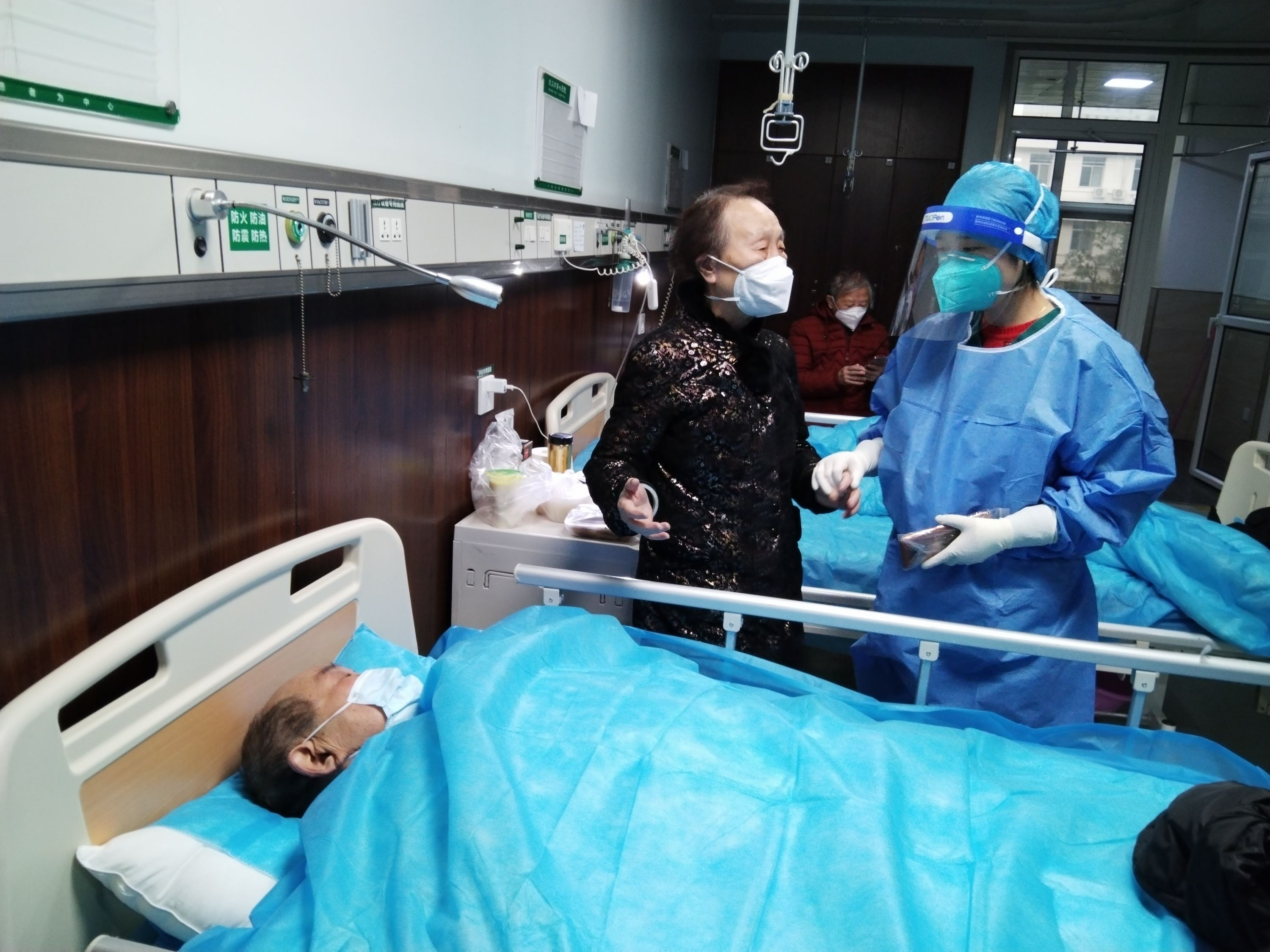 市七医院隔离八病区的医护细心照料两老。